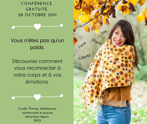 Depuis 2005, j’accompagne les femmes émotionnELLEs et gourmandes à retrouver une relation zen avec les aliments ainsi qu'avec leur corps et leurs émotions, le tout sans privation ni frustration. Des hommes aussi, évidemment, il y en a juste moins !